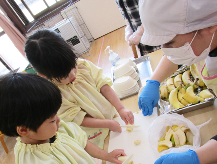 ナイフでバナナを切ってフルーツポンチ作り!