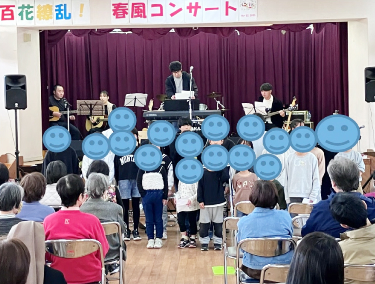 「百花繚乱!春風コンサート」アート展二日目、地域の方々の前で歌う子どもたち