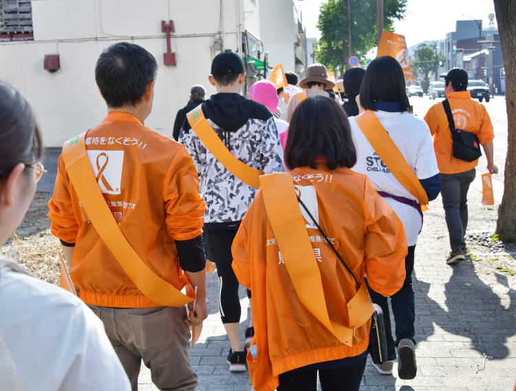 ■ 11月には子ども虐待防止啓発活動としてオレンジリボンキャンペーンを行います。子育てに優しい社会の実現を目指して、1人でも多くの方々に児童虐待問題への関心と理解が得られるように活動します。