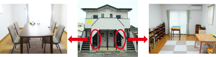 近隣のアパート(米子市旗ヶ崎3丁目12-16)の2部屋を借り、より多くの子どもさんやご家族のご相談、サポートができるようにしました。